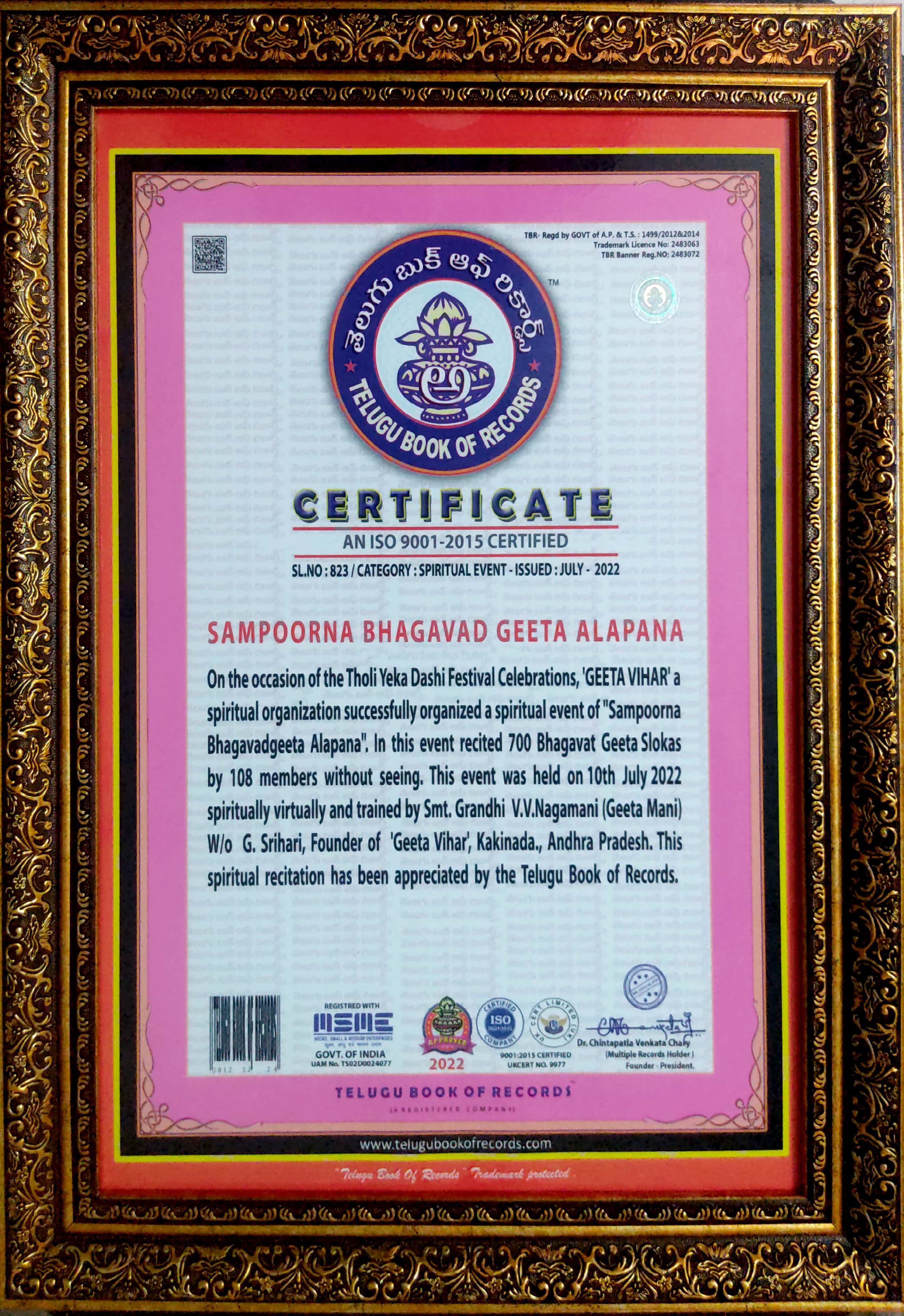 GeetaVihar is Conceptualized & Mentored by Smt.Grandhi Nagamani and her purpose is to make the eternal knowledge of Bhagavad-Gita and Vedic Slokas available to everyone.Her unique and highly methodical system of presenting the true philosophy about God is extremely rare.She continues to be an inspiring beacon for many hundreds of thousands students on the path towards God the world over.